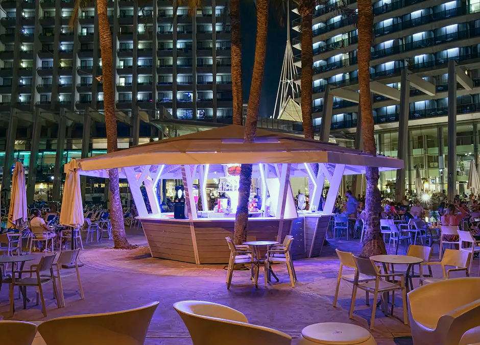 The Pool Bar se ubica junto a las piscinas, un enclave ideal para disfrutar de nuestra animación nocturna y diurna. Te ofrece una amplia selección de cócteles, para llevar tu experiencia a otro nivel